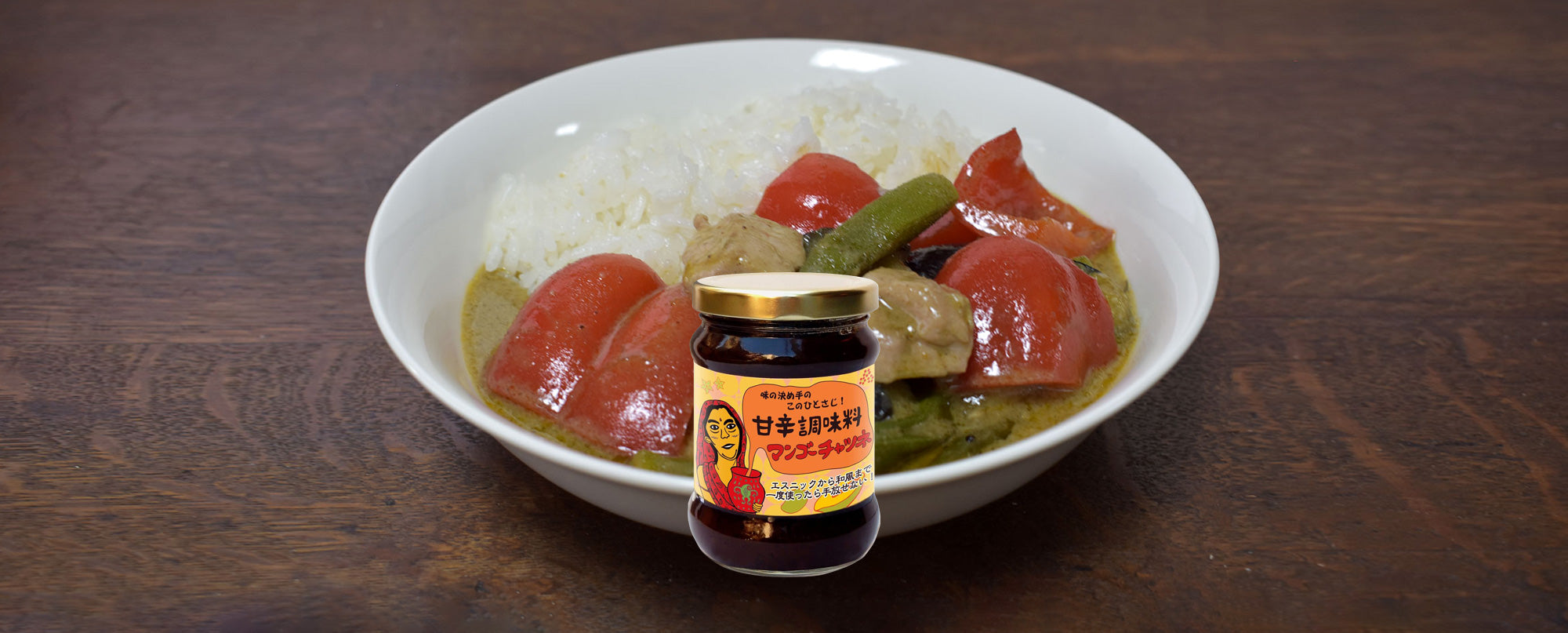 スリランカ産マンゴーのフルーティーな果肉を、スパイスやお酢、砂糖と一緒に煮込んだ甘辛風味の万能調味料。